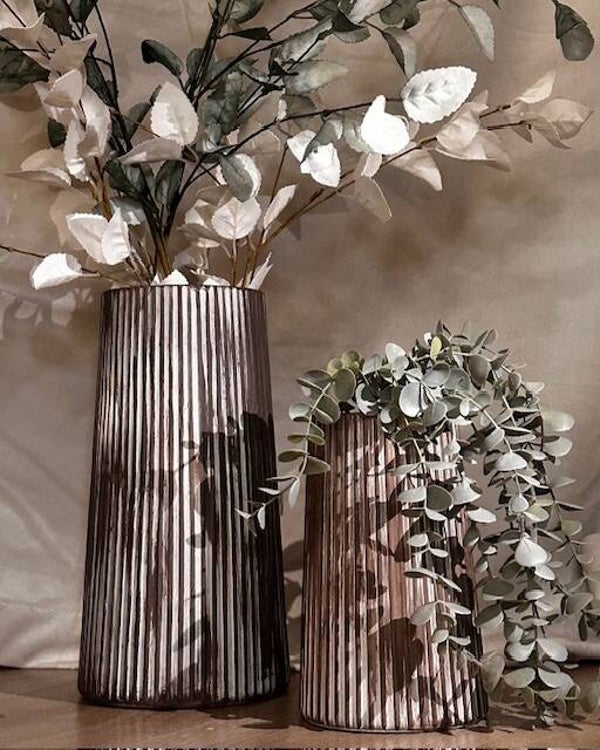 Denne vase er håndlavet til et mat udtryk. Grundmaterialet er af glas. (sælges uden blomster)